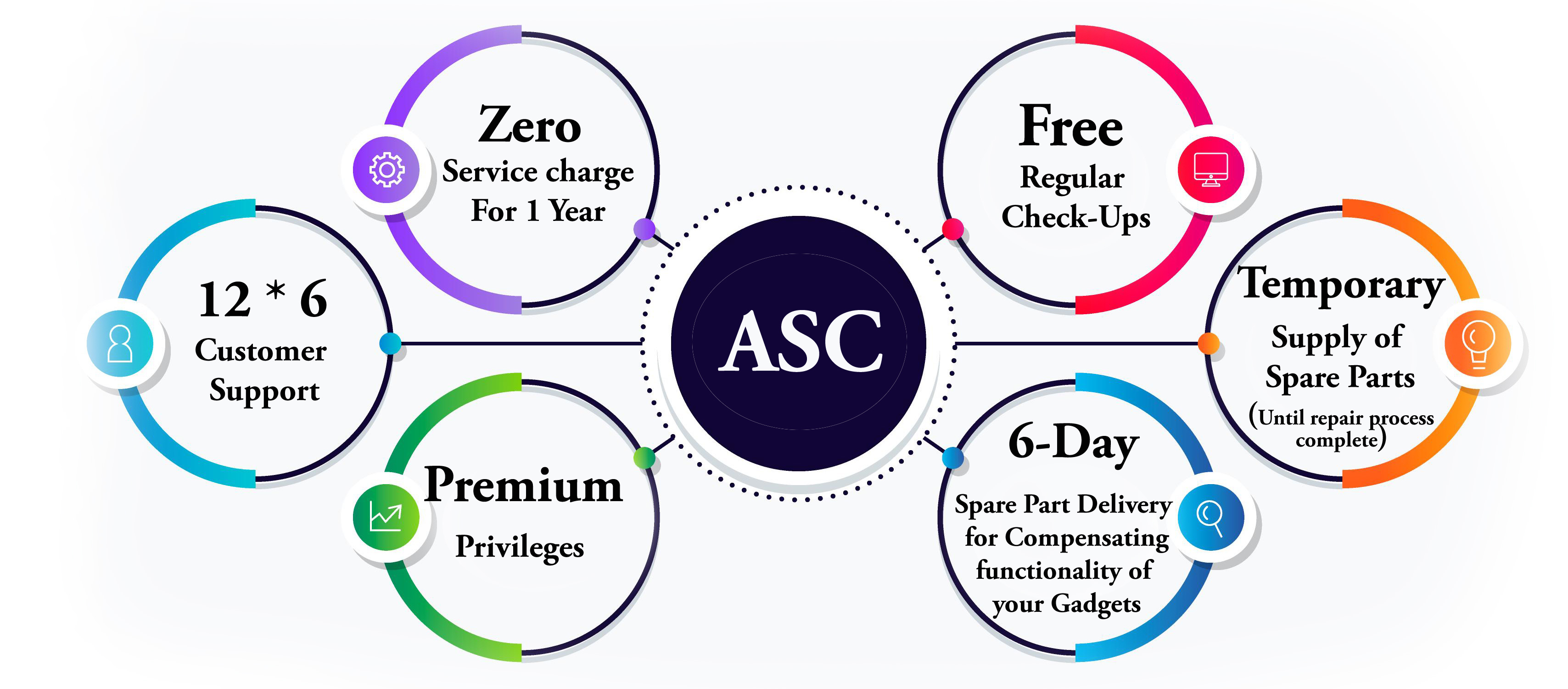 ASC provides all round protection for your gadgets throughout the year, and comes with many additional privileges like the ones listed below.